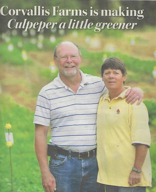 Corvallis Farms, LLC is a family owned and operated local-market farm in Culpeper, Virginia, specializing in all kinds of salad greens, berries - blueberries, raspberries, strawberries and blackberries - vegetables, and fresh cut flowers. Our goal is to provide our customers with fresh, healthy and delicious, local produce. Our flower bouquets of both annual and perennial cut flowers can brighten up any mood or room in the house. Flowers for special events are available upon request.